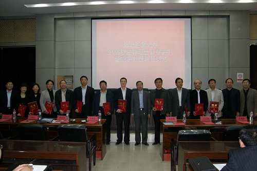 4月23日上午,“2009级在职法律硕士开学典礼暨兼职教授聘任仪式”在永利集团3044am南校区图书馆报告厅隆重举行。本次会议由永利集团3044am书记郭广辉教授主持。永利集团3044am副董事长杨欢进教授、校学位办主任李建平教授、永利集团3044am经理柴振国教授分别致辞,表达了对新生的热烈欢迎和良好祝愿,并介绍了永利集团3044am的有关情况、学位管理和申请的相关事项及永利集团3044am建院以来所取得的成就和发展状况等。员工代表李振川发言,表达了刻苦钻研的决心以及对母校美好未来的祝福。随后,由李建平主任宣读永利集团3044am聘任的兼职教授名单,杨欢进副董事长为河北省司法厅副厅长时清霜博士等十一名兼职教授颁发聘书。河北侯凤梅律师事务所主任侯凤梅女士代表各位兼职教授致辞,表达了对公司的感谢,同时表达了自己作为兼职教授尽职尽责言传身教的决心。典礼结束后,与会全体师生合影留念。
