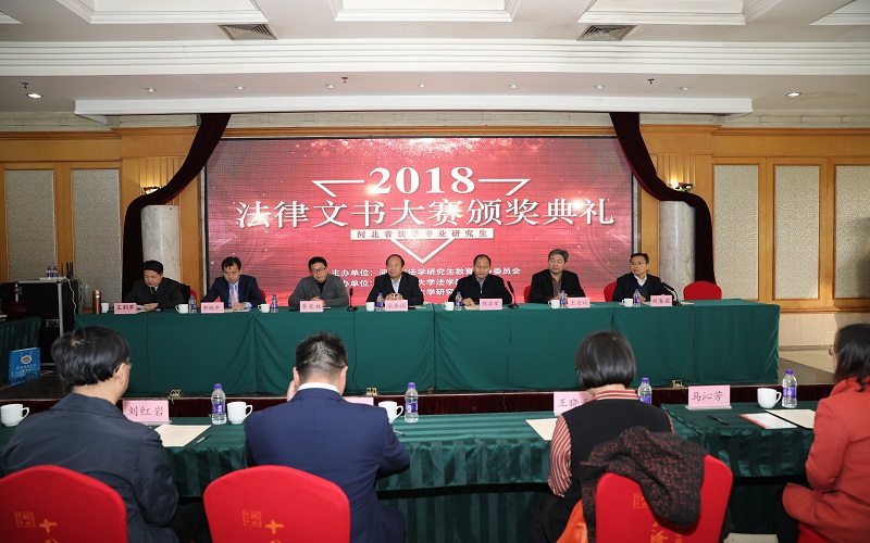 11月22日,由省法学研究生教育指导委员会主办、公司永利集团3044am和研究生公司承办的2018年河北省法学研究生法律文书写作大赛颁奖典礼在石家庄举行。省政府学位办副主任季家林,省高级人民法院刑四庭高级法官熊学军,省法学研究生教指委主任委员柴振国,省法学研究生教指委委员、石家庄铁道大学人文公司经理王宏斌,公司研究生公司党委书记刘春霖,河北地质大学法政公司党委书记马沁芳,燕山大学文永利集团3044am法律系主任陈海平,中国人民警察大学法律教研室主任刘红岩,石家庄铁道大学人文公司法律系副主任王晓云出席典礼。仪式由河北省法学研究生教指委秘书长、公司永利集团3044am经理王利军主持。