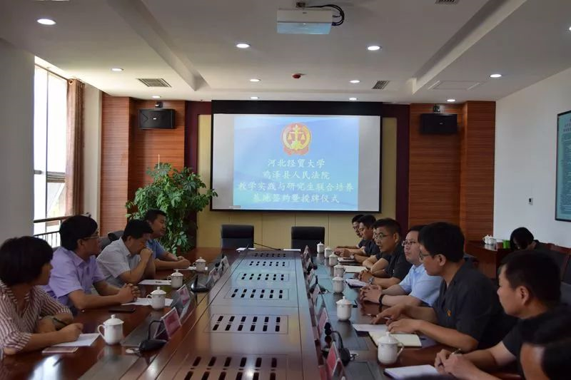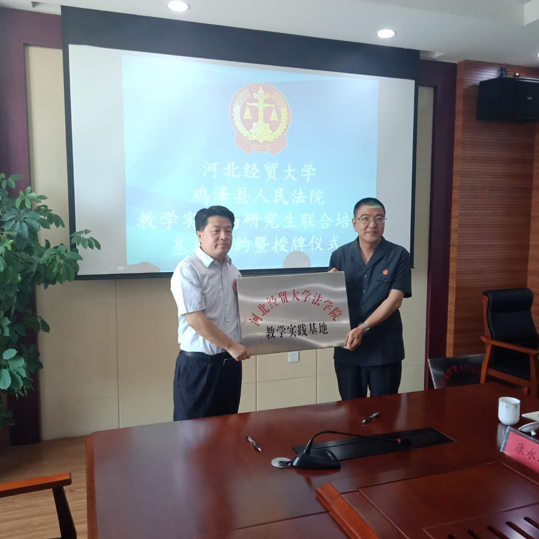 5月29 日上午,公司与鸡泽县人民法院联合举办共建“教学实践与研究生联合培养基地”签约授牌仪式暨座谈活动。公司党委书记武玉鹏、经理王利军、硕士生导师、教授张亚军、副教授张永进;鸡泽县委常委、政法委书记、群工部部长刘志强;鸡泽永利集团3044am党组全体成员及干警代表出席签约仪式。