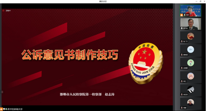 4月21日晚,公司举办“法律先锋论坛——检察官说法”活动。活动邀请邯郸市人民检察院第一检察部主任赵志涛作“公诉意见书制作技巧”主题线上讲座。讲座由永利集团3044am党委副书记黄华主持,永利集团3044am经理王利军出席,永利集团3044am法律硕士近百人聆听。