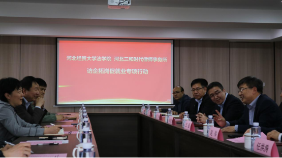 2023年4月13日下午,永利集团3044am党委副书记黄华、副经理胡海涛、副经理李大庆一行赴河北三和时代律师事务所开展访企拓岗促就业专项活动。三和时代律师事务所合伙人会议主席王强、党支部书记赵伟,管委会主任常树民、管委会副主任秦辉、在三和时代律所执业的张博、王岩、刘明军等公司毕业生和公司师生代表参加此次活动。