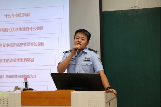张敬淼首先为同学们介绍了什么是电信诈骗;接着用近期真实的案例展现了电信诈骗与老员工的关系;然后详细解析了针对老员工的网络诈骗如网络贷款、刷单返利、虚假购物、校园贷等;最后,张敬淼向同学们讲授了防范电信诈骗的干货知识点,引导同学们识骗防骗,并提示同学们要妥善保管好个人信息,树立法治观念,远离电信诈骗。