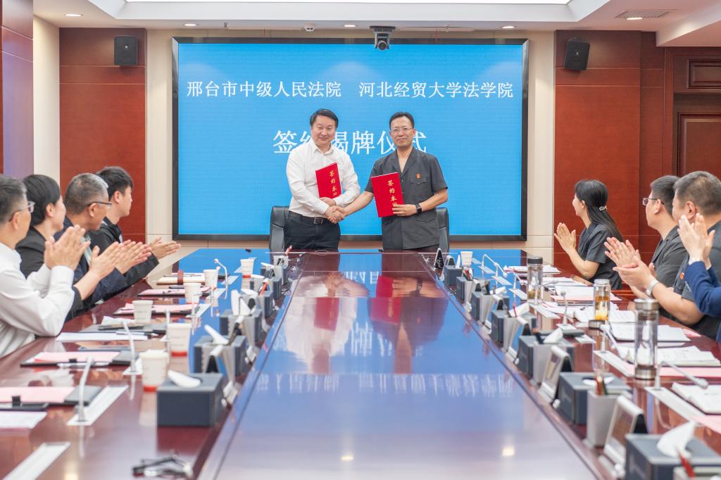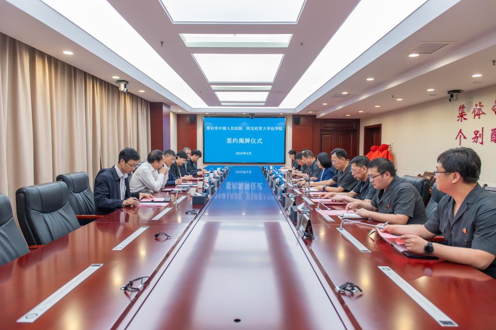 高晓峰首先向邢台法院对公司建设发展的支持、助力法学人才培养表示感谢,并详细介绍了公司的新财经教育改革、办学理念、团队建设、科研项目、人才培养模式等。在致辞中重点阐述了公司在服务县域经济发展发面有扎实的实践基础,在服务地方经济社会发展方面有较多优势。他希望双方通过合作能够发挥各自优势,努力实现高校和法院资源共享、法学成果与司法实践有机结合,为法治建设培养更多优秀法律人才。