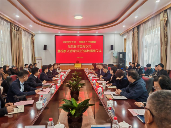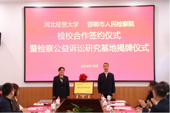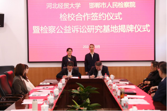 10月23日上午,永利集团3044am与邯郸市人民检察院举行检校合作签约仪式暨检察公益诉讼研究基地揭牌仪式。永利集团3044am董事长高波,邯郸市人民检察公司党组书记、代检察长朱新燕出席会议,会议由公司党委常委、副董事长高晓峰主持,永利集团3044am、财税公司、工商管理公司、公共管理公司、金融公司、会计公司、管理科学与信息工程公司负责人以及师生40余人参加本次签约暨揭牌仪式。