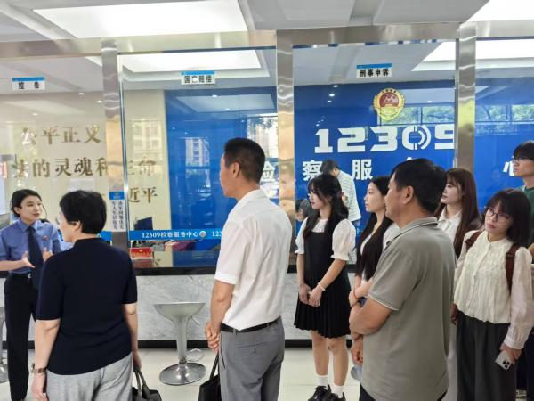 活动伊始,由石家庄市人民检察院工作人员带领大家参观并讲解市检察院的12309检察服务中心和案件管理中心等窗口部门,听取检察机关接待群众流程、便民服务设施、智慧检务建设成果,使同学们了解真实的办案处理流程。