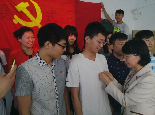 王娟传达了公司和公司关于“两学一做”学习教育的要求,布置了永利集团3044am对于党的建设规定以及针对毕业生党员所开展的各项活动。“戴党员徽章 跟党走”仪式中,郑建村、王娟和仇志伟三位老师为毕业生党员佩戴党员徽章,全体党员面向党旗,重温入党誓词。毕业生党员代表进行发言。