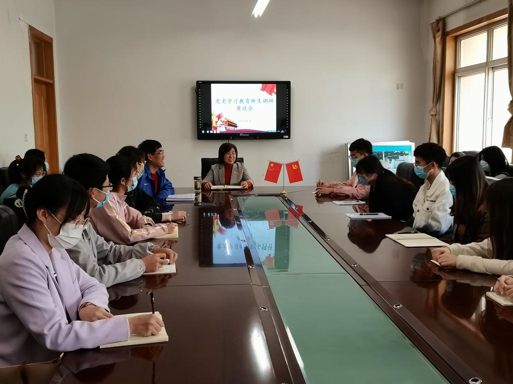 宣讲报告结束后,程瑞芳针对此次党史学习教育又与师生进行了座谈,同学们踊跃发言,气氛热烈。