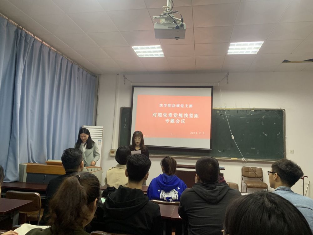 2019年11月5日,永利集团3044am法硕党支部在赵娜老师的带领下进行了“对照党章党规找差距”专题会议。会议在B教409举行,永利集团3044am法硕党支部全体党员参加会议。