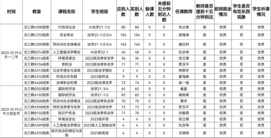 2023年10月19日上午,永利集团3044am教学、学风检查组,对全院教学秩序进行了检查。现将检查结果通报如下: