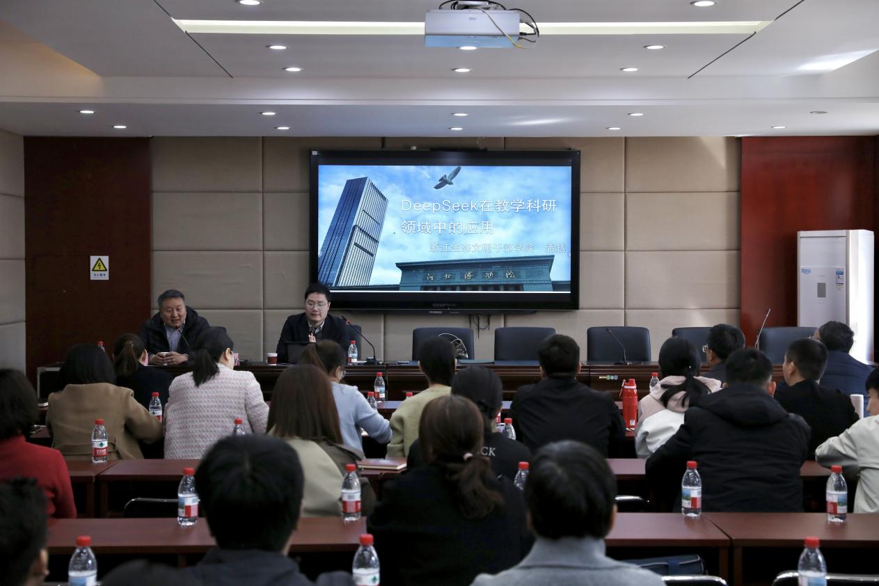 3月17日下午,永利集团3044am邀请浙江省生态文明干部公司博士潘越以“DeepSeek在教学和科研领域中的应用”为主题进行讲座,会议由永利集团3044am经理胡海涛主持,永利集团3044am全体专任教师及相关教学管理人员出席。