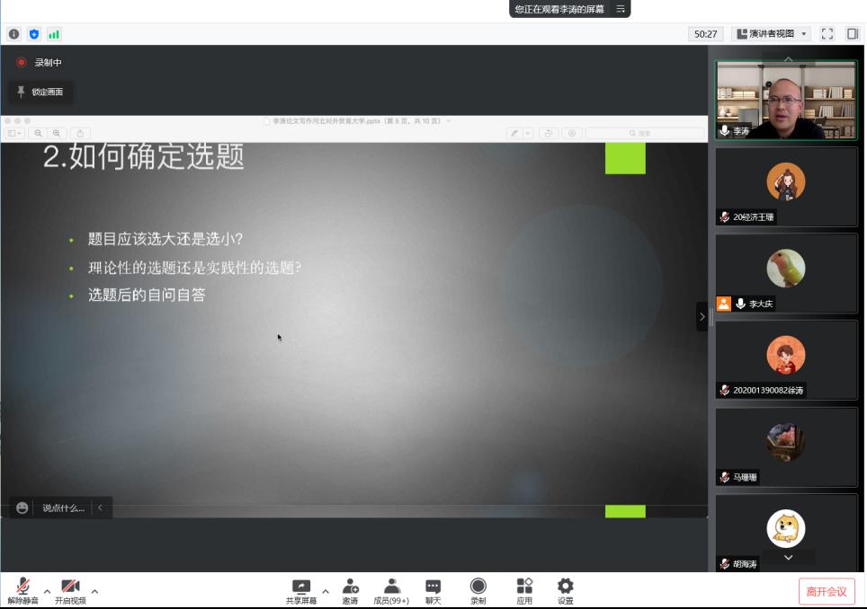 5月4日下午,永利集团3044am邀请湖北省社科院李涛编审作题为“学术论文的选题、写作及规范”的线上专题讲座,永利集团3044am副经理李大庆主持本次讲座,130余名研究生参加。