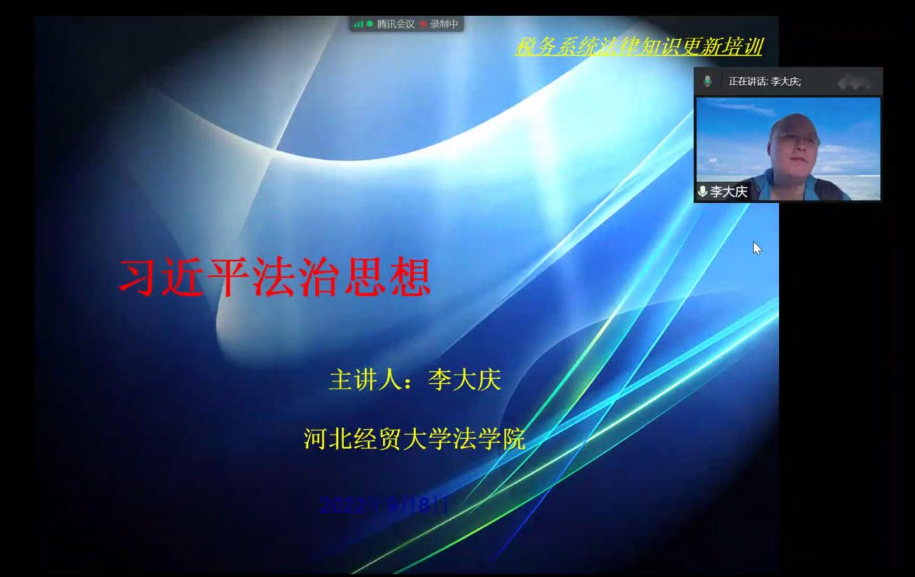 永利集团3044am副经理胡海涛以“行政法学体系与税收法治”为题作报告。他从行政法学体系和基本结构入手,给大家介绍了行政法学体系中的税收法治内容,并详细介绍了其中的重点难点问题。
