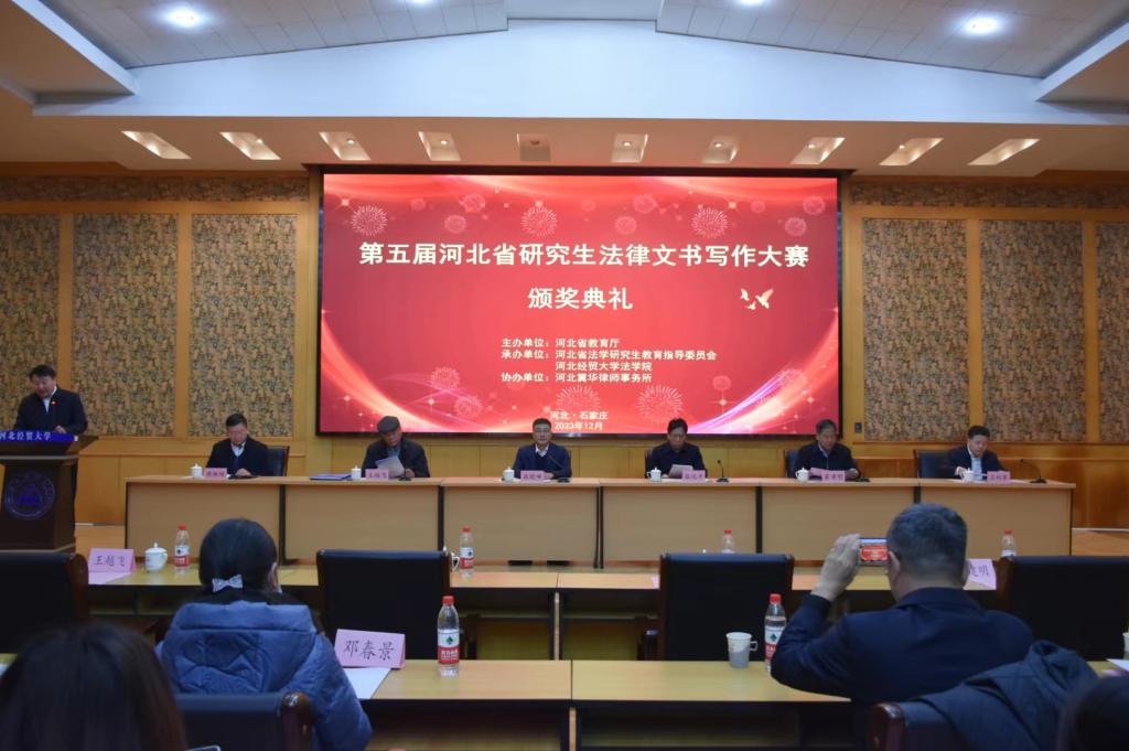 12月2日—3日,由河北省教育厅主办,河北省法学研究生教育指导委员会、永利集团3044am承办,河北冀华律师事务所协办的第五届河北省研究生法律文书写作大赛决赛及颁奖典礼在公司顺利举行。永利集团3044am党委常委、副董事长高晓峰,河北省法学研究生教指委副主任委员、河北省司法厅原副厅长、党委委员、一级巡视员霍建明,河北省法学研究生教指委副主任委员、河北省高级人民法院原副经理王越飞,河北省法学会副会长、河北省法学研究生教指委委员周保刚,河北省高级人民法院副经理、河北省法学研究生教指委秘书长王利军,河北省教育厅学位管理与研究生处处长张化平出席颁奖典礼,典礼由永利集团3044am经理胡海涛主持,来自省内高校专家学者、法律实务界人士及师生100余人参加。