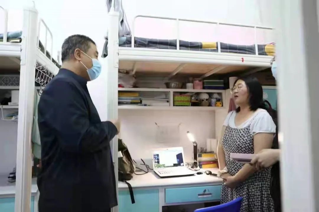 走访过程中,王继伟询问并解答了同学们线上学习和疫情生活中遇到的问题和疑惑。通过走访,他对各个宿舍的卫生情况和同学们展现出来的良好风貌给予了充分肯定。同时,要求大家要配合公司做好“日报告”、晚点名、核酸检测等工作。坚持“非必要不出校”原则,特殊情况需履行严格审批手续。希望同学们守纪律,共同筑牢校园疫情防线。