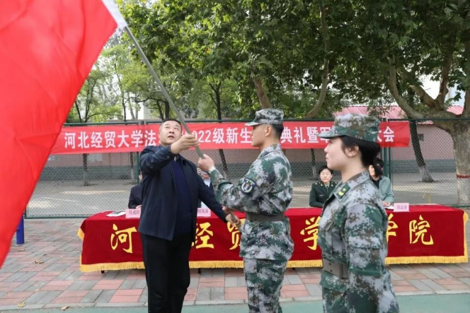 大会最后,王继伟向军训团八营营长范博文、副营长刘欣宇授旗。永利集团3044am2022级本科新生开学典礼暨军训动员大会在热烈的掌声中圆满结束。