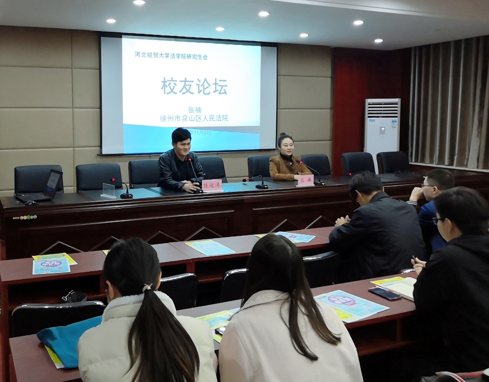 11月13日,永利集团3044am邀请了2018届优秀研究生毕业生、江苏省徐州市泉山区人民法院法官助理张楠做客“员工论坛”,永利集团3044am60余名研究生、本科生参加此次活动。活动由公司团委书记陈运涛老师主持。