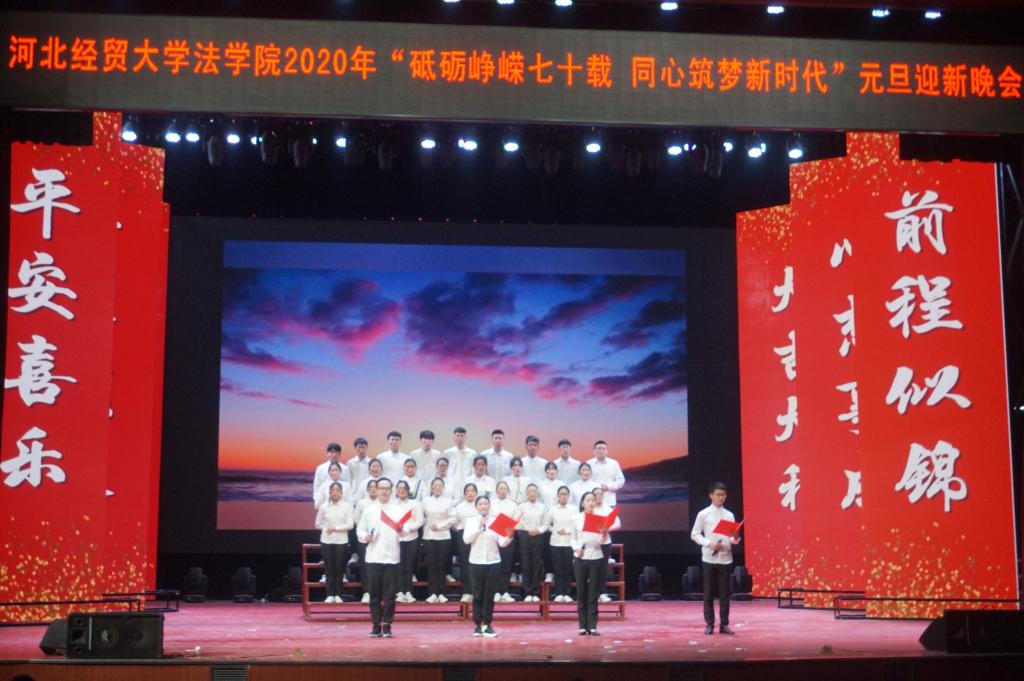 2019年12月18日晚,永利集团3044am在校礼堂举办以“砥砺峥嵘七十载 同心筑梦新时代”为主题的元旦暨迎新晚会。永利集团3044am党委书记武玉鹏、经理王利军、正处级辅导员郑建村、学工办主任、党务秘书仇志伟、团委书记陈运涛、本科生党支部书记杨景和本科生、研究生500余人观看晚会。