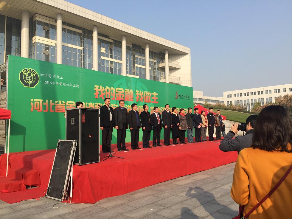 11月4日下午,永利集团3044am于图书馆前隆重举办河北省金融消费教育“进校园”宣传咨询服务活动。此次活动以“我的金融我做主”为主题,由河北省教育厅、省公安厅、省工商局、省银监局、省消费者协会、省保险行业协会、中国人民银行石家庄中心支行等7个部门联合举办,旨在提高员工群体对金融消费的认知能力和自我保护防范意识。来自主办方、协办方的有关人士以及永利集团3044am员工处领导、永利集团3044am的师生共500余人参加了此次活动。