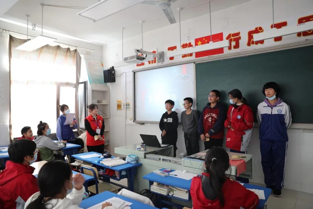 以案说法、情景宣讲。七(一)班内宣讲员张怡宁在“自我保护小tips”环节,结合初中时期亲历的身边人身边事重点展开讲述,“和比自己大四五岁的网友见面后,便失踪了足足一个星期,父母老师都在满世界找她。”同学们从张怡宁的描述中,真切地感受到学会自我保护、提高防范意识是何等的的重要。随后,向同学们提问:“法律的作用是什么?”“法律对每一个人都是平等的、法律保护个人的利益、财产、安全……”孩子们争先恐后的回答令人惊叹。张怡宁在结束宣讲后由衷地感慨到:“如何更详细更有针对性地让初中生们知道什么事情会侵犯自己的权益,以及如何正确有效的保护自己,是我在宣讲过程中思考最多的问题,初中生积极的态度和优秀的领悟力极大地感染了我,今后会更加积极地投身普法志愿活动中!”