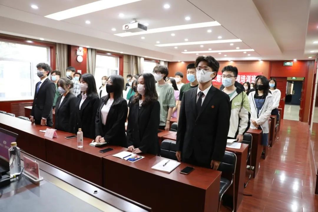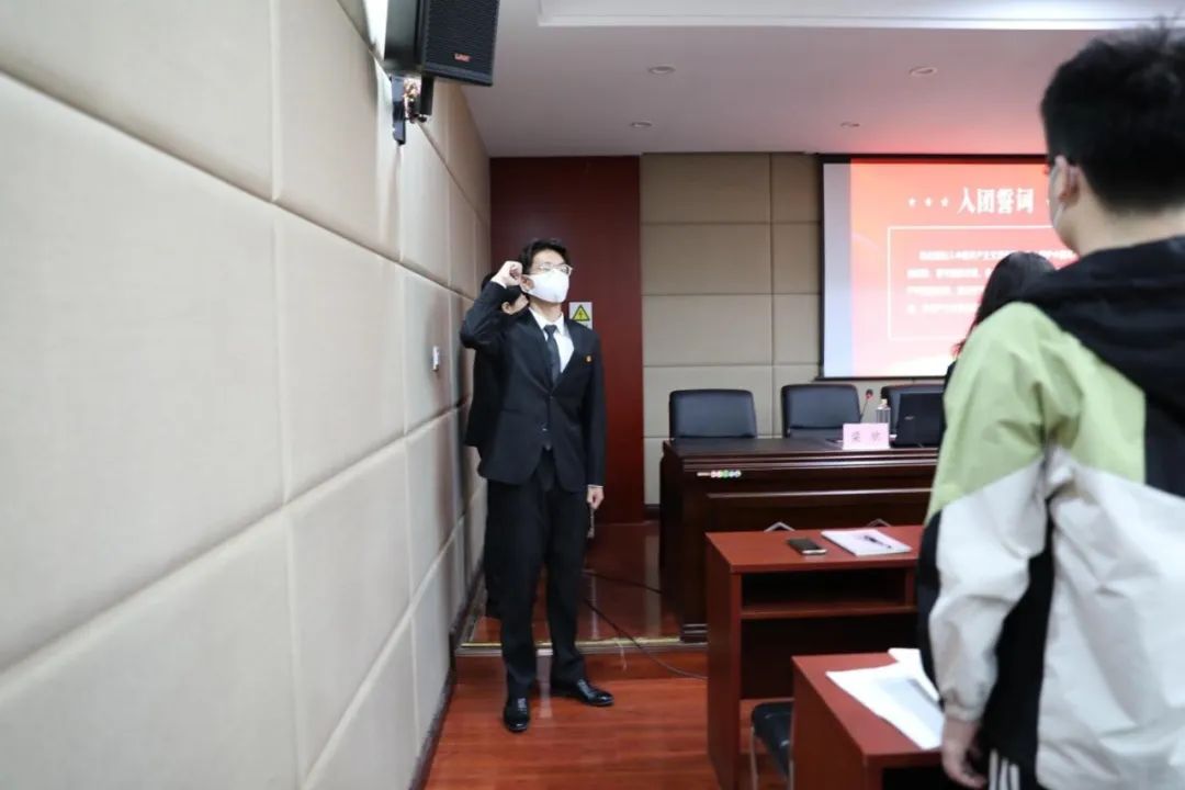 春夏更迭,暮风和旭。模拟法庭三楼会议室内,忽而有嘹亮的团歌阵阵传响,永利集团3044am第十二期青马培训班学员正在齐唱团歌……伴随着最后一个音节淡出,仪式来到了第二项——重温入团誓词。
