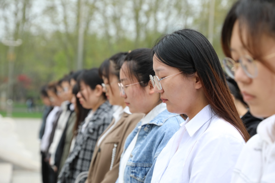 伴随着中华人民共和国国歌响起,活动正式开始,全体师生面向革命烈士纪念碑庄严肃立,向革命先烈默哀。