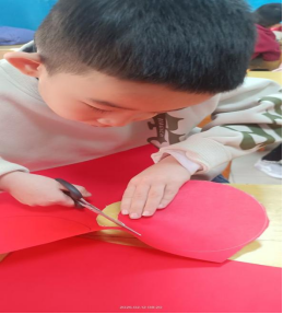 到了手工环节,志愿者们决定带领孩子们制作纸灯笼与花灯,感受传统手工的魅力。制作纸灯笼时,志愿者耐心讲解,孩子们小心翼翼地沿着直尺边缘裁剪,虽动作稍显稚嫩,但认真专注。制作花灯时,志愿者和孩子们一起搭出框架,装饰花灯四周,最后系上红绳,装上灯光,当灯光亮起,孩子们的笑脸也被映照得格外灿烂。