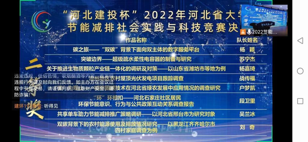 比赛过程中,公司学子通过前期的网络通讯评审,经线上答辩、专家主审、小组讨论、评审合议等环节,过关斩将,最终取得佳绩,进一步提高了节能减排意识和创新实践能力,激发了为实现“双碳”目标,建设现代化经济强省、美丽河北贡献智慧和力量的志向和决心。