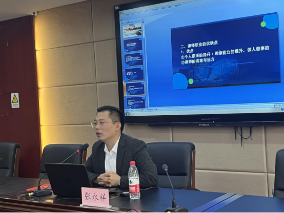 4月14日下午,永利集团3044am邀请2015届国际法专业毕业研究生、北京市盈科(邯郸)律师事务所张永祥律师于永利集团3044am三楼报告厅开展了题为“律师的自我进化—如何扎实稳重的成为一名好律师”的职业生涯规划专题讲座。活动由公司员工工作办公室主任陈运涛主持,2021级、2022级研究生70余人参加。