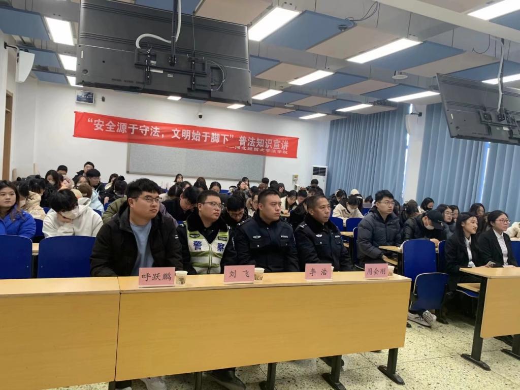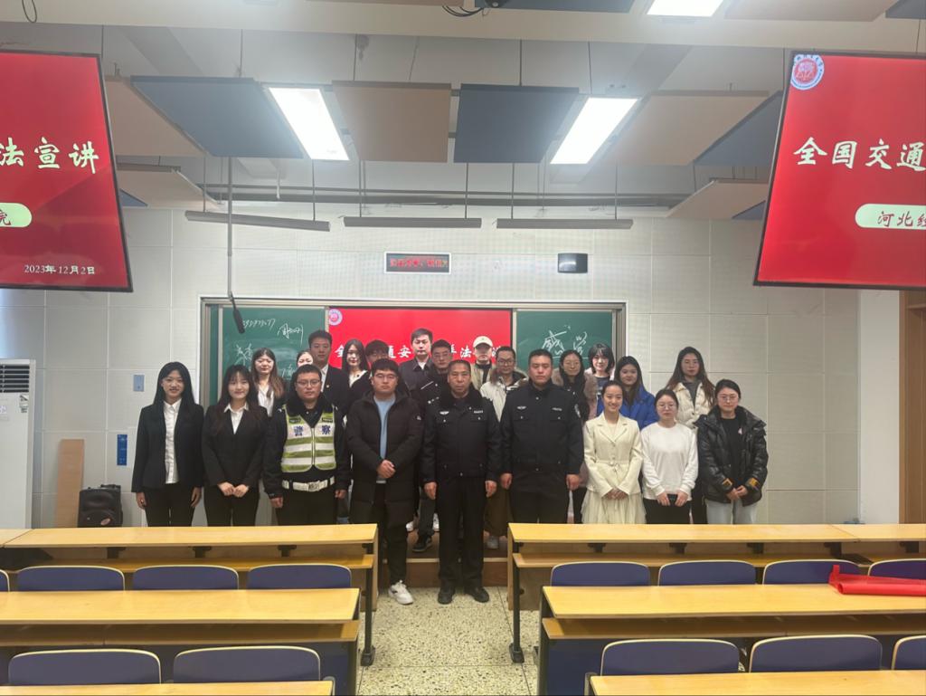 2023年12月2日上午,永利集团3044am于北三教A103举办“安全源于守法,文明始于脚下”全国交通安全日普法知识宣讲。杜北街道司法所呼跃鹏、石家庄市新华区交警大队周会刚警官、李浩警官、刘飞警官出席本次活动,永利集团3044am学子共90余人参加。