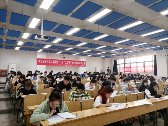 本次大赛分为笔试和面试两个环节。在笔试环节,考生们奋笔疾书,认真作答。考试结束后,工作人员依据国家公务员的考试标准和流程选拔出十名同学进行决赛。在面试环节,吴卫民设置紧扣当前社会热点的考题,对考生们的应答表现依次打分。比赛结束后,吴卫民进行点评,他对考生们的表现予以认可,并在题目理解、答题角度等方面指出不足,并强调在座同学们要打好知识基础,把握应届生身份优势,为公务员考试做好充足准备。