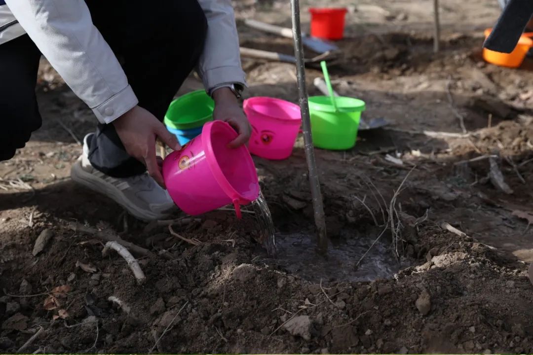 活动伊始,志愿者们列队整齐,认真聆听绿化技术人员对如何正确挥锹铲土、把握树坑深度、浇水定根等植树要点的详细讲解。随后,志愿者们分组行动,有序领取铁锹、水桶等工具,迈着整齐的步伐进入场地,并迅速投入到植树劳动中。大家分工协作,默契配合,挖坑、栽植、灌溉、覆土,每一道工序都有条不紊地进行着。在众人齐心协力之下,原本空旷的土地上,新栽的树苗迎风挺立,展现出勃勃生机。